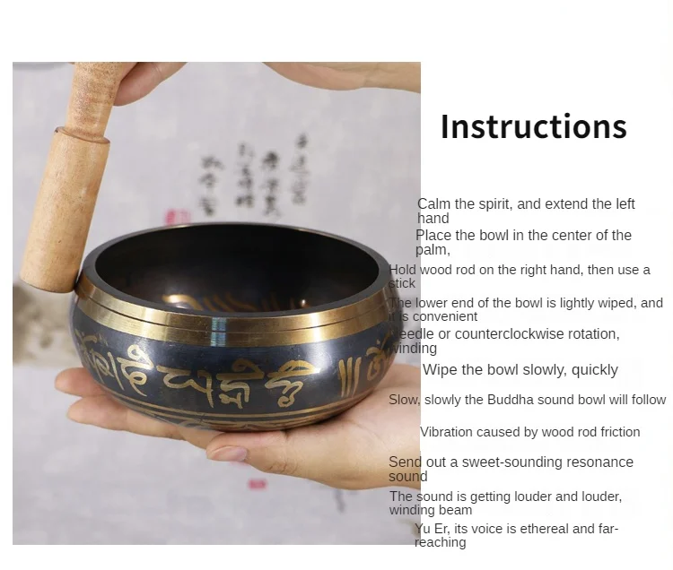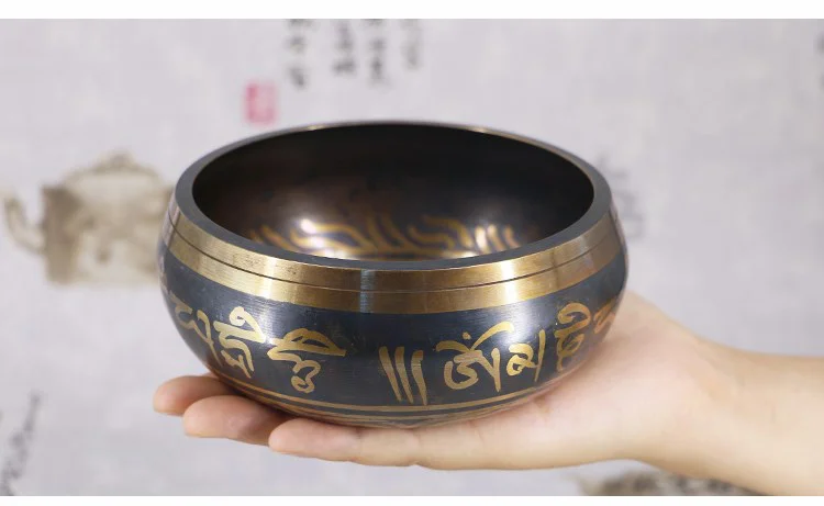 Tibetan Meditation Black Singing Sound Copper Bowl Buddhist Supplies Mindfulness Meditation Bowls Buddhist Offering Bowl Set